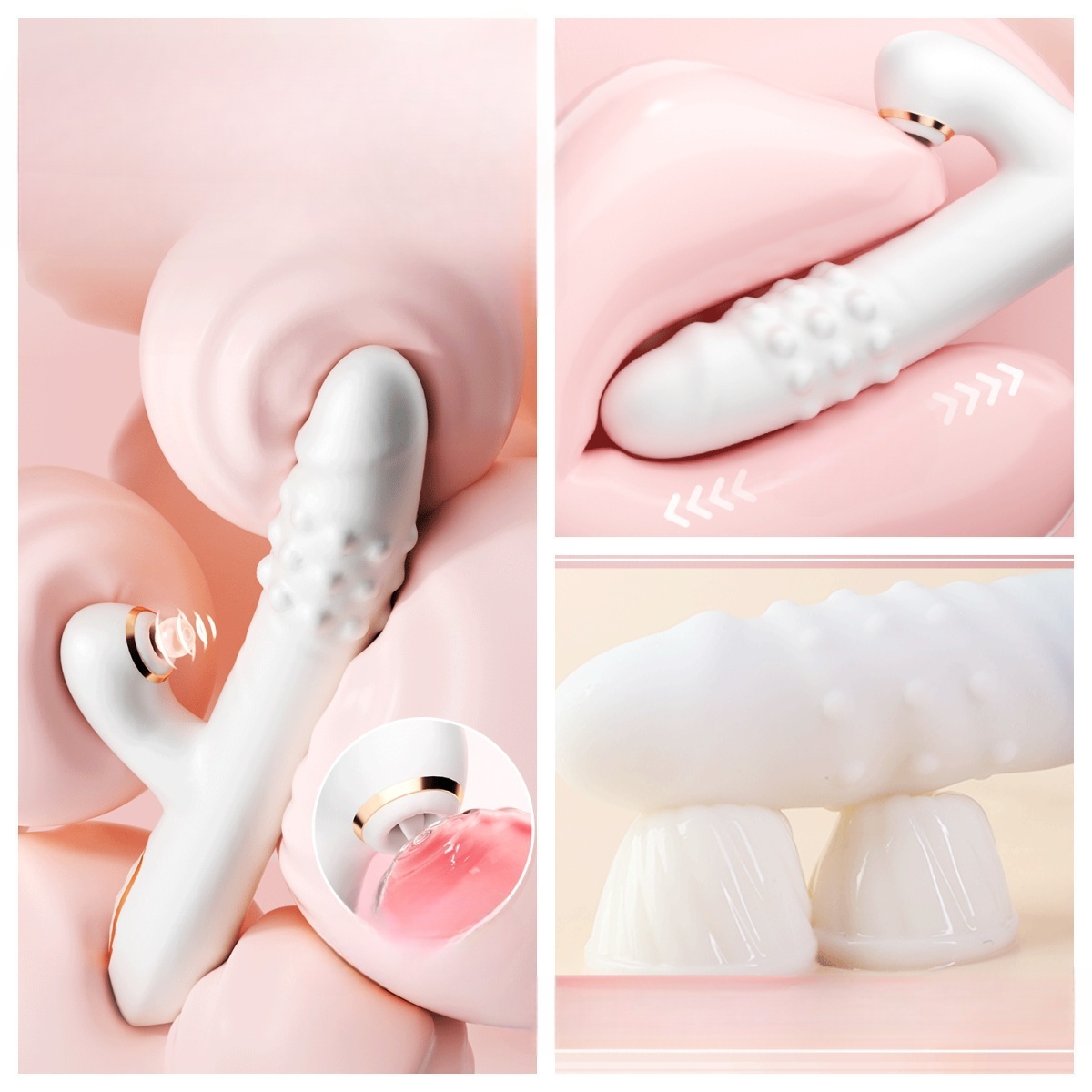 Featuring a thrusting shaft with three rows of raised nodules, this vibrator provides deep, textured friction.Additionally, the rotating head mimics natura motions,enhancing internal sensations.Meanwhile,the suction targets external erogenous zones for dual arousal.