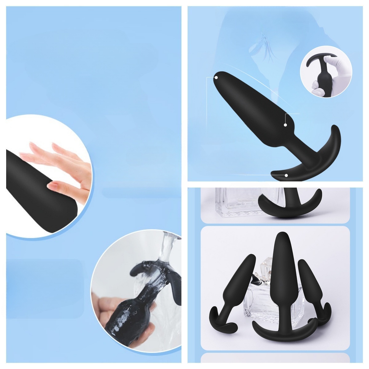 1. **Preparation**: Clean plugs with mild soap and warm water before use. Apply water-based lubricant generously to the plug and anal area.